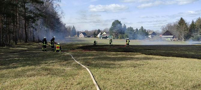 Ca. 20m² Wiese brannten am frühen Abend in Neu Zauche und konnten durch die ersten Einsatzkräfte vor Ort schnell gelöscht werden.