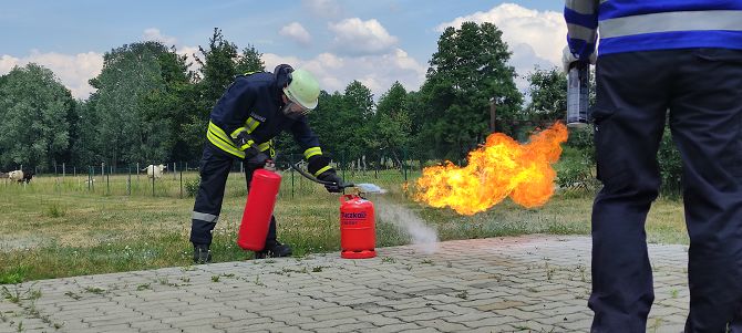 Druckgasbehälter stellen für Einsatzkräfte eine enorme Gefahr dar. Um darauf besser vorbereitet zu sein gab es heute lehrreiche Instruktionen und Vorführungen im Umgang mit Flüssiggasbehältern. Bei praktischen Übungen wurden Flammen, die aus einem Behälter schlagen, mit einem Feuerlöscher abgelöscht und im nächsten Schritt die Gaszufuhr unterbrochen.