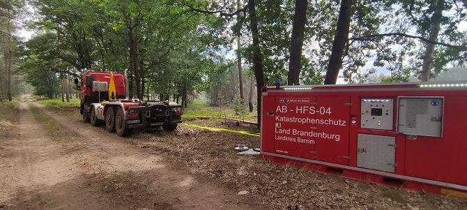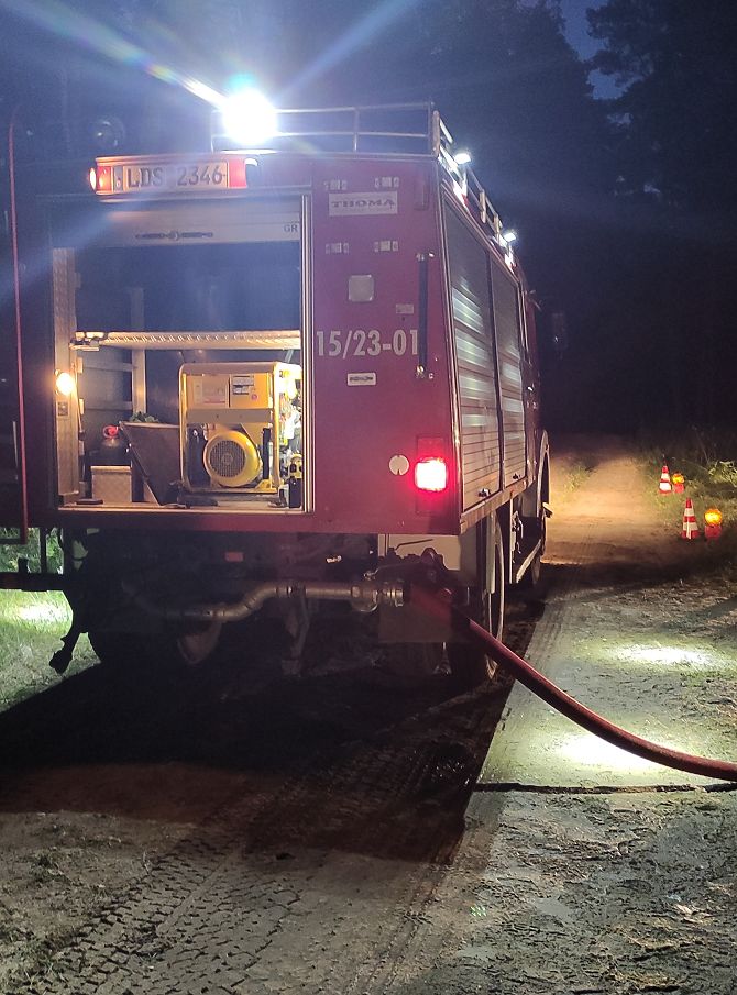 In den Abendstunden wurden wir alarmiert, um die Wasserversorgung für einen erneut aufflammenden Waldbrand in der Spreewaldheide sicherzustellen. Der Einsatz ging bis in die Nacht hinein.