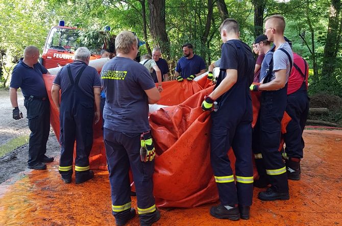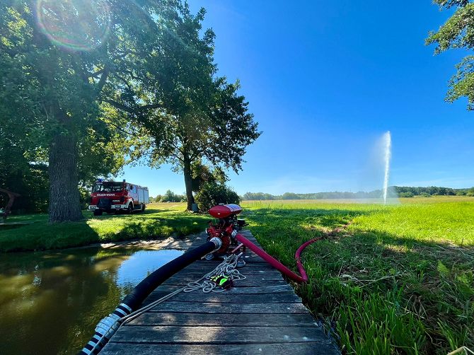 Eine kontinuierliche Wasserversorgung ist das Wichtigste bei Brandeinsätzen. Aus diesem Grund haben wir an diesem sonnigen Vormittag spontan den See in Byhlen aufgesucht, um unsere Ausbildung bei diesen Temperaturen an einen erfrischenden Ort zu verlegen.